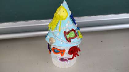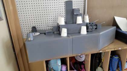 子供たちが夏休み期間中に作った貯金箱の一部です。中には、大きな戦艦もありました。頑張りました。