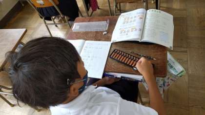 4年生は、算数科のそろばんの学習です。そろばんを使っての足し算と引き算の学習です。電卓やパソコンが全盛期の中、まだまだ、「そろばん学習」は残っています。