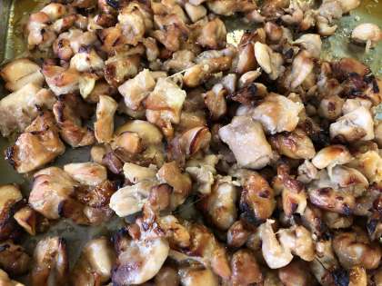 鶏肉は、料理酒・みりん・こいくちしょうゆで下味をつけて焼き物機で焼きました。