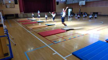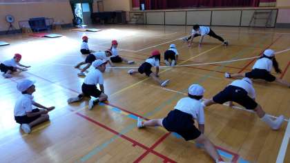 今日、都島区主催の取り組みの、「運動能力向上事業」がありました。都島区の大東にある「アソビリティー」というところから、スポーツインストラクターの方2名をお招きして、各個人の運動能力を高める取り組みがありました。1年生は体育館で、リズムよくジャンプする運動をしていました。体の調整力や敏捷性が鍛えられているようでした。