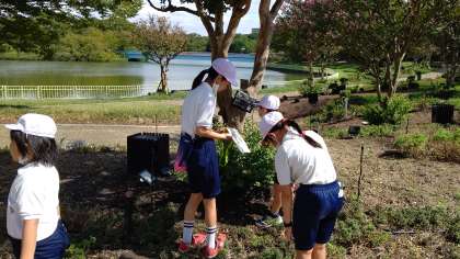 到着後、植物園の中でオリエンテーリングを行いました。ポイントは全部で12。各ポイントでは、「アオギリの万葉植物名は何ですか?」など、そのポイントにちなんだクイズに答えたり、有人ポイントで先生からサインをもらったりして、グループのお友達と協力しながら、がんばって活動していました。