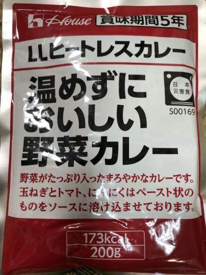 温めずに食べられる野菜カレーです。災害時にも食べられるように賞味期限が5年もあります。なかなか食べる機会がないのでとても良い経験になりました。