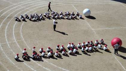 運動会まであと1週間になりました。各学年、仕上げの時期になってきました。3年生は団体競技の大玉ころがしの練習をしていました。