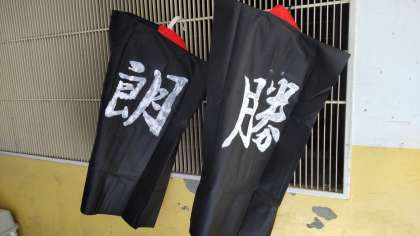6年生は、自分の法被を完成させ、その法被を着て 〜絆 心ひとつに〜(よさこいソーラン?と集団行動?)という演技をします。だんだん盛り上がってきました。