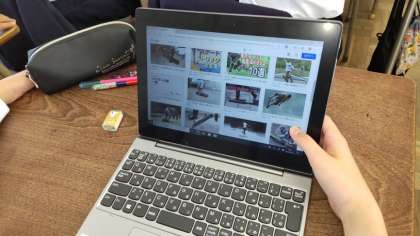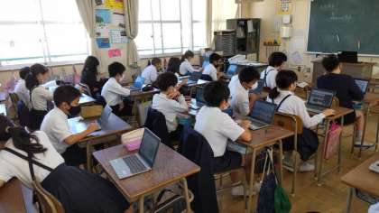 5年生は、一人一台パソコンを使って、画像検索の仕方と保存の仕方を練習していました。2年前は、パソコンを40台使うと、半分くらいしかネットにつながりませんでした。かなり改善され、使いやすくなってきました。配布している家庭用の電源バッテリーを使って、おうちでも使ってね。