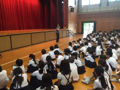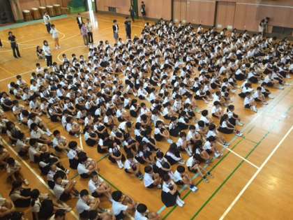 終業式には校長先生より「1学期の目標が達成できたか?」「自分の命は自分で守ろう」というお話がありました。生活指導部長東先生からは、「大人のいないお家に上がらない」「一人ぼっちになることをさける」「交通安全に気をつける」というお話、体育主任の大石先生からは「学校のプール解放にみんなで来ましょう」という話があり、最後に谷先生の指揮の元声高らかに校歌を斉唱しました。教務主任の藤本先生からは、立派な参加態度をほめられた子どもたちは誇らしげに体育館をあとにしました。