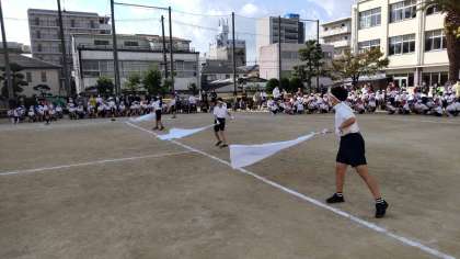 中学年の部が始まりました。応援団もがんばってます。