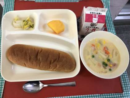 ★10月27日(木)の給食は、・豆乳コーンクリームシチュー(米粉)
