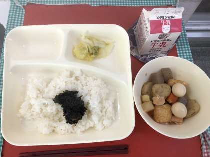 *今日の関東煮は【うずら卵】の個別対応献立です。