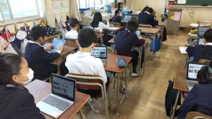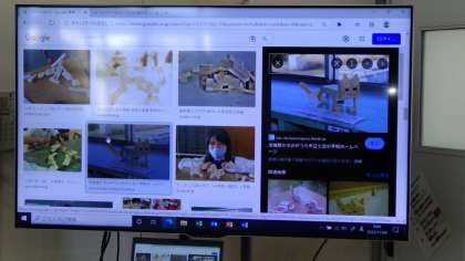 4年生は気をのこぎりで切り、またそのパーツをつなげていって、ものの形を構想していました。