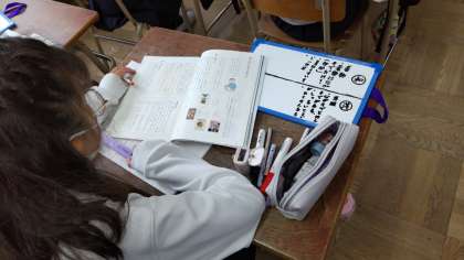 4年生は、国語科で「引用」の学習をしていました。自分の作文で、とある本から文章を借りて参考に載せる方法です。