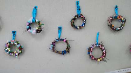 1年生はきれいなリーフを作っていました。クリスマスには少し早いかな?