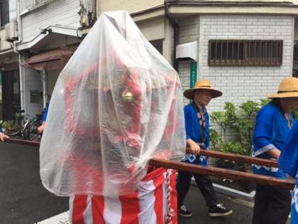 しかし、雨にもめげず子どもみこしが回ってきました。