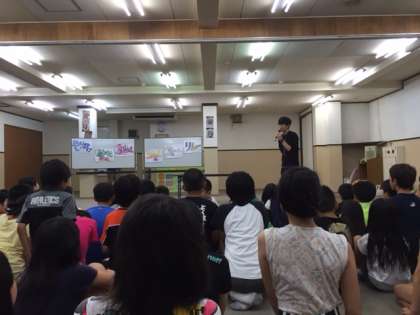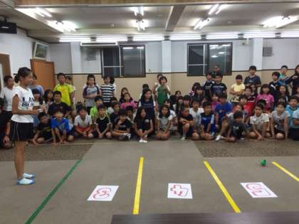 一日目夜は室内オリンピック!砲丸(風船)投げで距離を競いました。