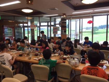 体操の後は、眠い目をこすりながらも朝ごはんです。