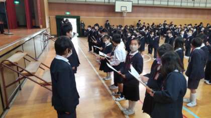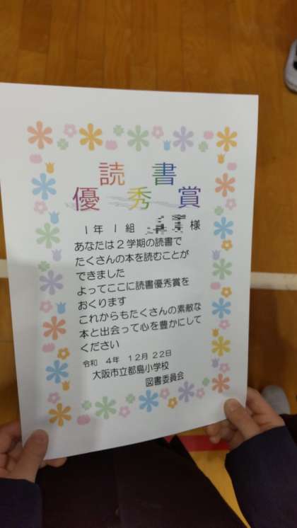 続いて、読書委員会の人から、学年で3名、たくさん本を読んだ人の表彰式もありました。命を大切にして、冬休みを過ごしましょうね。
