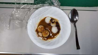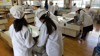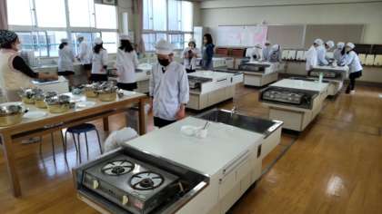 5年生は、白玉粉を耳たぶくらいの柔らかさにこね、お湯で炊き、きな粉やあんこをかけていただきました。コロナ禍ですが、アルコール消毒と換気に気を付けて実習しています。2年前は、全く調理実習ができなかったことを思うとずいぶん活動が豊かにできています。