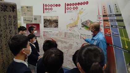 また、巨大地震が発生し、大津波が大阪に押し寄せるシュミレーション映像では、左右の壁面にも映像が映し出され、音響スピーカーで床面が振動するなどしてとても臨場感にあふれ、緊張した面持ちで視聴していました。