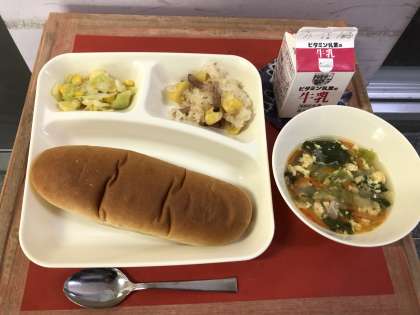 ぬるま湯に60分以上つけたもち米と焼き豚、くり(水煮缶)、しいたけ(乾)を料理酒、塩、こしょう、こいくちしょうゆ、チキンブイヨン、ごま油、水で味付けし焼き物機で焼きました。