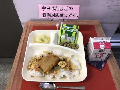 *今日のカツ丼は、【たまご】の個別対応献立でした。