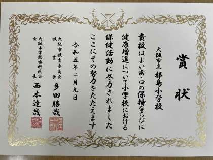 また、都島小学校が「令和4年よい歯の学校表彰」を受けました。