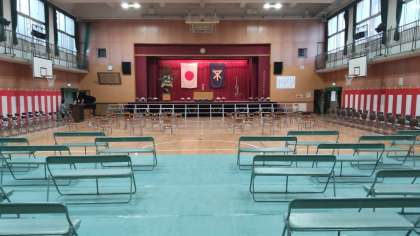4月になりましたので、基本的にマスクの着用は求めません。ただ、花粉症やマスクを取りたくないという人もいますので、その辺りは保護者の皆様や子どもたちの実態に合わせていきます。各自ご判断ください。ただ、学校生活のためには、顔の表情もコミュニケーションの一部の手段と考えておりますので、マスク着用なしをお勧めします。本年度は3年ぶりに来賓の方にも来ていただいての式になります。良い式になるよう願っています。2年生のお迎えの演技や言葉もあります。