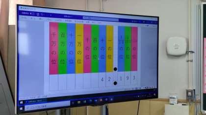 5年生の教室をのぞいてみると、一人の専科教員が授業をしていて、それ以外に二人の先生が机間指導をしていました。きめ細やかに取り残しがないように指導しています。