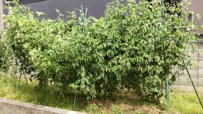 しろいはながついているほうが「うすいえんどう」紫の花がついているのが「ツタンカーメンのエンドウ豆」です。たくさん実がついていましたが、もっと膨らんでいくでしょう。ゴールデンウィーク前が収穫の時でしょう。