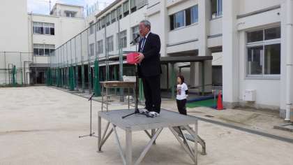 本校では、本日の児童朝会で木本校長が全校児童に向けて、いじめを許さない心の大切さについてお話をしました。