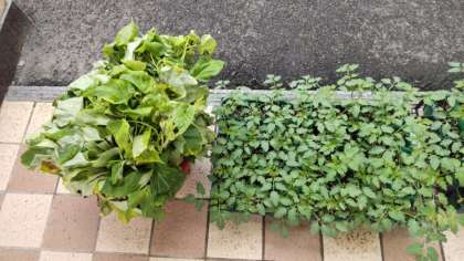 こたえ、「サツマイモのつる」「ミニトマト」でした。
