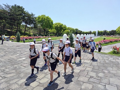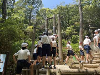 子ども達は到着後、フィールドアスレチックを思う存分楽しんだあと、お弁当を美味しくいただきました。それから園内にある公園に移動して、短時間ではありましたが遊びました。たくさん遊具がありましたが、とてもスピードの出る滑り台が大人気で、3回、4回と繰り返し滑っている子もいました。