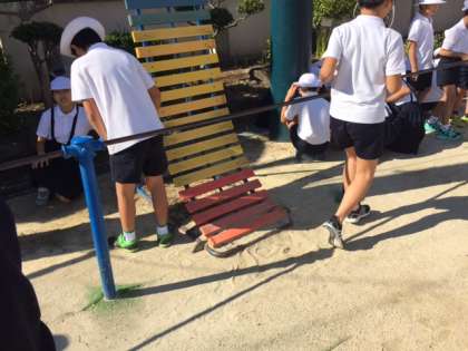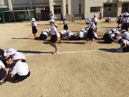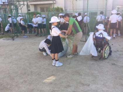 運動会に向けて全校児童で草抜きと石拾いをしました。