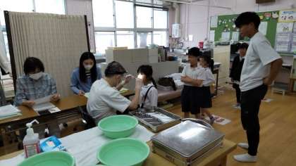 今日は偶数学年の歯科検診がありました。9時から12時まで3時間かかって、学校の半数170名くらいの歯をみてくださいました。