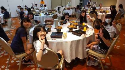 お風呂に入って、スッキリとして、晩御飯です。子どもたちのかんそうは、「スゲエ!」でした。なかなか、お部屋も食事場所も食事もゴージャスです。