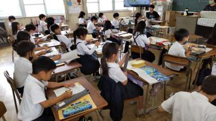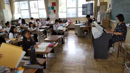 もう一つのクラスでは、子どもたちは、音楽の専科の先生から、リコーダーや歌を教わっていました。今日はリコーダーを左手だけで吹いていましたが、これから右手が入り、だんだん高度になっていきます。