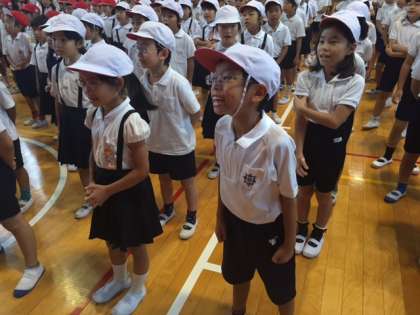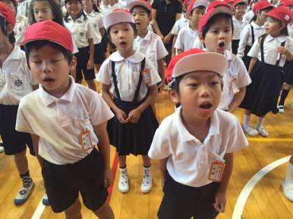 紅白に分かれた歌詞があり、3番は紅白が一斉に歌います。