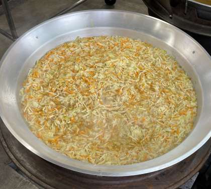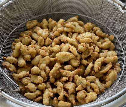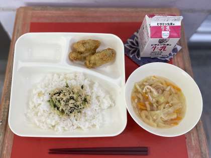 今日の給食のとりなっ葉いためでは、大根葉を乾燥させたものを水で戻して使用しています。