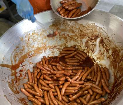 給食では、豚肉、塩、香辛料などを混ぜ合わせたものを使っています。