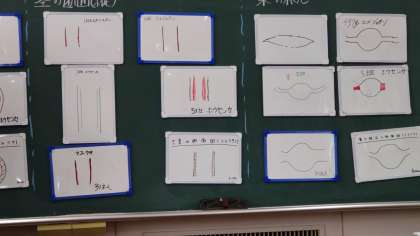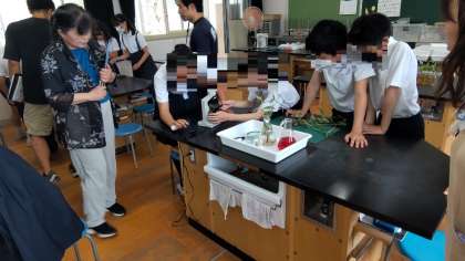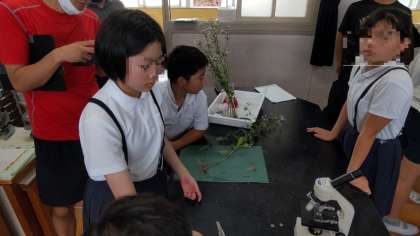 6年生は植物の水の通り道(根→茎→葉→気孔→水蒸気として空気中へ)や光合成の学習をしています。今日は、ホウセンカ・ヒメジョオン・ツユクサの3つの植物の各部分を縦や横に切って、水の通り道を調べていきました。単子葉類(ツユクサ)と双子葉類(ホウセンカ・ヒメジョオン)が混じっていましたが、見事にその違いが実験で明らかになりました。