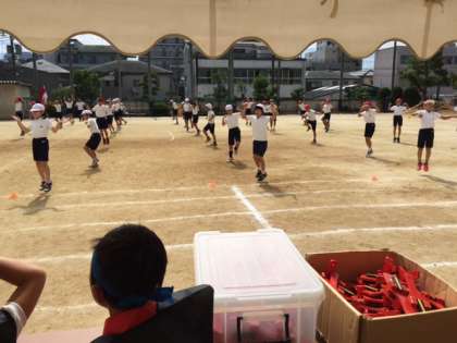 4年生が3年生の前で完成度の高い演技を見せてくれました。