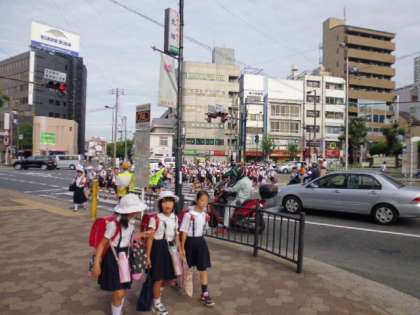 9月24日(火)から交通安全運動がありました。交差点には「子ども見守り隊」の皆さんやPTAの皆さんが立って下さっています。子どもたちが安全に登校できるように、毎朝指導して頂いています。