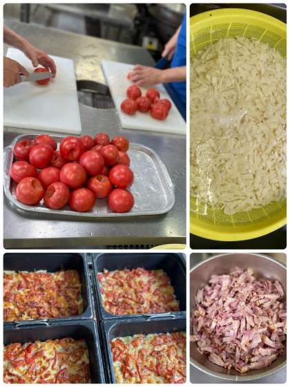 今日の給食の「じゃがいもとトマトのチーズ焼き」には、生のトマトが使われています。
