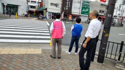 2学期の初めから、都島本通の交差点に、児童の登校時間子どもたちを見守っていただける方が増えました。学校のスクールサポートスタッフの田中さんが1学期から、8時前から8時15分くらいまで立っておられましたが、この度、大阪信用金庫の方々が、地域貢献・社会貢献の一環として、登校時間に合わせて子どもたちを見守ってくださっています。本当にありがとうございます。このように多くの地域の方々に見守られ、子どもたちは元気にすくすくと育っています。ありがとうございます。