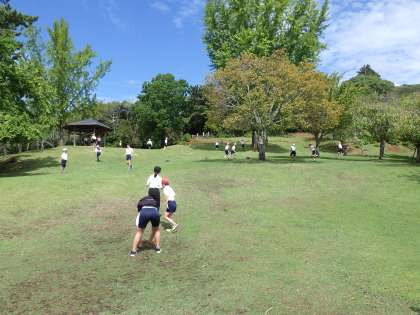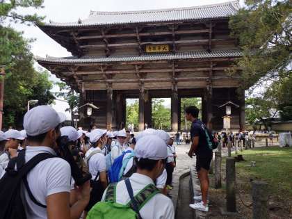 東大寺大仏殿から二月堂、若草山、春日大社を巡り、奈良公園内の広場でお弁当を食べました。