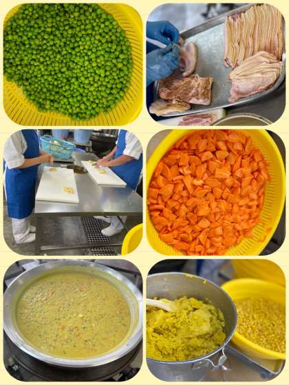 今日の給食には、豆乳コーンクリームシチューに、コーン(冷)とコーン(ペースト)が使用されました。