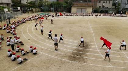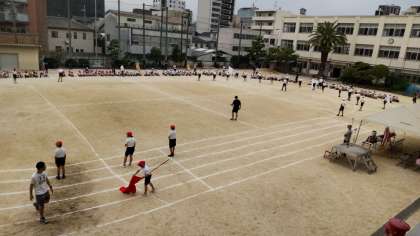 開閉会式では、優勝旗の授与や児童誓いの言葉の練習、校歌や運動会の歌の練習を全校児童で行いました。雨がポツリとしましたが、気になる雨でなく天候が持ってよかったです。