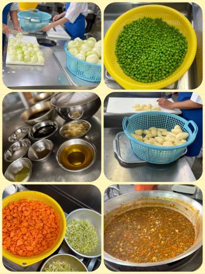 給食でいつも登場しているハヤシライスは、小麦粉で作る「ブラウンルウ」を使ってとろみをつけています。