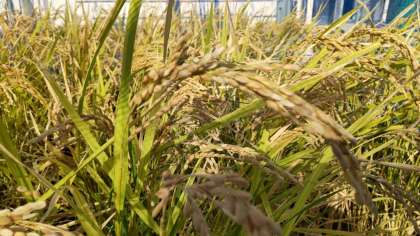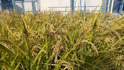 都島小学校の田んぼが黄色くなってきました。秋ですね。運動会が終われば稲刈りをします。今、水を抜き、栄養分を稲穂にためています。