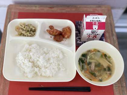今日の給食に使われている切干しだいこんには、食物せんいがたくさん含まれています。