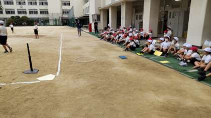 4年生はボール型ゲームのティーボールに向けて、ルールの説明を聞いたり守備位置や打順を決めたりしていました。日本シリーズが終わるころまで続きそうです。